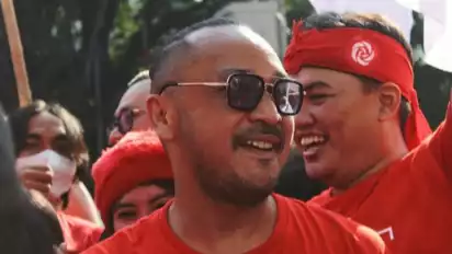 Ia terlihat mengenakan kaos partai bertuliskan "Suara Rakyat Itu Nggak Dicuekin".