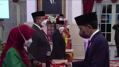 Jakarta - Presiden RI Joko Widodo (Jokowi) menganugerahkan tanda kehormatan Republik Indonesia kepada ratusan tokoh pada Upacara Penganugerahan Tanda Kehormatan RI dalam rangka memperingati HUT Ke-77 Republik Indonesia.