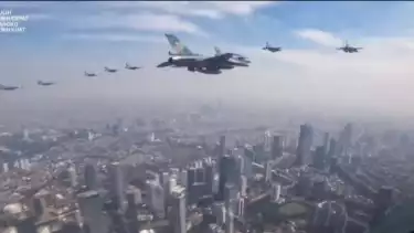 "Dari kompi pesawat tempur F16 Fighting Falcon, kami Angkatan Udara di bawah biru langit ibu kota mengucapkan Selamat Ulang Tahun Ke-77 Kemerdekaan Republik Indonesia Tahun 2022. Pulih Lebih Cepat, Bangkit Lebih Kuat. Merdeka," seru Mayor Penerbang Bambang Aulia.