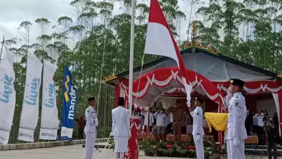 Pekerja lapangan proyek pembangunan IKN Nusantara juga ikut menjadi peserta upacara pengibaran bendera Kemerdekaan Republik Indonesia ke-77 tersebut.