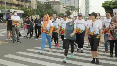 Jakarta - Guna menjaga tali silaturahim, kekompakan, guyub serta badan tetap bugar dan fit maka komunitas yang tergabung dalam Komengsong, melakukan jalan pagi bersama dengan titik start dan finis di Gedung Sarinah, Jalan Thamrin Jakarta Pusat pada hari Minggu (21/8/2022).