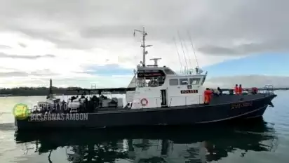 “Operasi SAR pada koordinat 06°4' 486" S - 133° 55' 748" E, Jarak -+ 26 NM, dan Heading 222,92° arah Barat Daya dari Pelabuhan Dobo, Selama Operasi SAR cuaca diselimuti Hujan ringan, Angin Timur Tenggara berkecepatan 15 knots, dan Ratas tinggi gelombang mencapai 2,5 M ”ujar Mustari.(Latief Madilis/Christ Belseran)