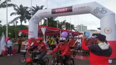 Jakarta - Sekretariat Jenderal DPR RI menyosialisasikan acara Parliamentary Speaker's Summit (P20) yang akan digelar pada 5-7 Oktober 2022 dalam kegiatan P20 Friendship Ride & Run 2022.