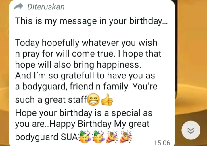 Isi chat yang diungkap tante Brigadir J, Roslin Emika, diduga dikirim Putri Candrawathi untuk Brigadir J. (FB/Roslin Emika)