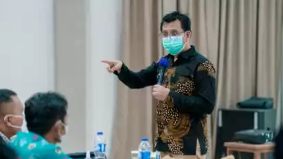 Kepala PKUB Kemenag Wawan Djunaedi (batik hitam)