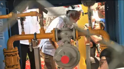 Setelah gas diolah, lalu dipompakan ke jaringan pipa rumah tangga yang sudah dipasangi sejumlah katup pengaman.