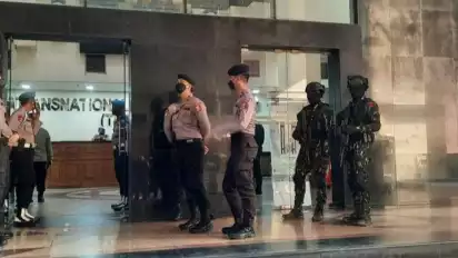 Dok. Petugas berjaga di Gedung Transnasional Crime Center (TNCC) Polri saat sidang etik Ferdy Sambo digelar.