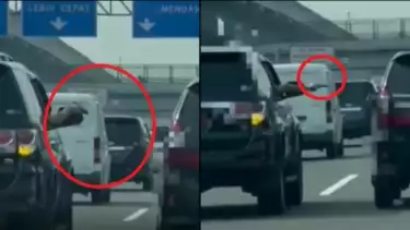 Mobil berplat berwarna merah (dinas) itu pun berpindah ke sisi kiri mobol di depannya untuk segera menyalip. Tetapi tak lama kemudian, Pengandara mobil fortuner plat dinas itu akhirnya mengeluarkan sebuah pistol atau senjata api.