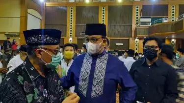 Kota Tangerang Selatan, Banten - Gubernur DKI Jakarta, Anies Baswedan mengikuti kegiatan salat jenazah almarhum Prof Azyumardi Azra di Kompleks UIN Syarif Hidayatullah, Ciputat, Kota Tangerang Selatan (Tangsel), Selasa (20/9/2022).