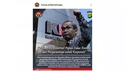 Jakarta - Akun resmi instagram @humas.poldametrojaya turut serta menyoroti kasus tindak pidana korupsi (Tipikor) yang diduga melibatkan Gubernur Papua, Lukas Enembe.