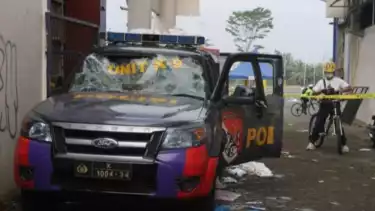Massa diduga tidak puas dengan kekalahan tuan rumah Arema FC 2-3 atas Persebaya.