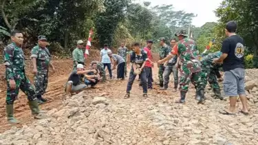 Jakarta - Upaya percepatan terobosan pembangunan di daerah pedesaan serta sebagai langkah peningkatan infrastruktur dan kesejahtraan masyarakat, dengan membangun jalan penghubung dua Kecamatan Rumpin dan Cigudeg, Komando Resort Militer (Korem) 061/Surya Kencana melalui Komando Distrik Militer 0621/Kabupaten Bogor, menggelar TNI Manunggal Membangun Desa (TMMD) di Desa Banyuasih, Kecamatan Cigudeg, Kabupaten Bogor.
