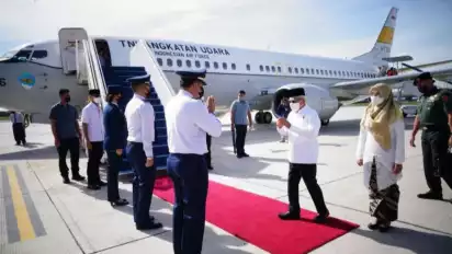 Dengan menggunakan Pesawat Khusus Kepresidenan Boeing 737- 400 TNI Angkatan Udara, Wapres dan rombongan lepas landas dari Pangkalan TNI AU Halim Perdanakusuma Jakarta menuju Pangkalan TNI AU Adisutjipto DIY sekitar pukul 08.20 WIB.
