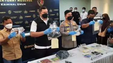 Polda Metro Jaya turut serta memperlihatkan sejumlah barang bukti yang berhasil disita dari tangan pelaku yang didapati bernama Siti Ellina.