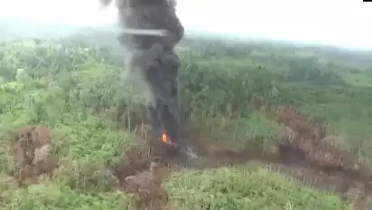 Batanghari, Jambi – Sudah sepekan kobaran api di lokasi meledaknya sumur minyak ilegal di kawasan hutan produksi Desa Bungku, Kabupaten Batanghari, Jambi belum juga berhasil dipadamkan. Kali ini tim gabungan dari Badan Penanggulangan Bencana Daerah (BPBD), Polri, dan TNI melokalisasi api dengan bom air melalui udara.