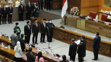 Jakarta - DPR RI resmi melantik tiga anggota dewan dalam Rapat Paripurna ke-9 Masa Persidangan II Tahun Sidang 2022-2023, Selasa (1/11/2022).