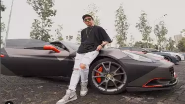 Foto Indra Kenz di antara Dua Mobil Mewah
