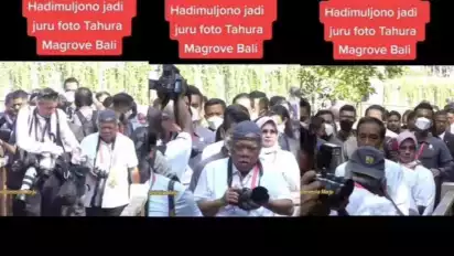 Pada kunjungan Presiden Jokowi ke lokasi acara penanaman pohon mangrove di Taman Hutan Raya Ngurah Rai, Denpasar, Bali pada Rabu (16/11/2022), ada momen menarik. Di mana, perhatian warganet mengarah pada Menteri PUPR, Basuki Hadimuldjono yang terlihat mengalungkan kamera besar layaknya seorang fotografer profesional.