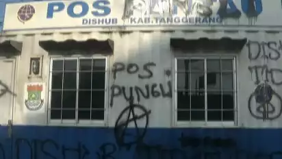 Tangerang, Banten - Pos Pantau Dinas Perhubungan Kabupaten Tangerang yang berada di Jalan Raya Parung panjang, Kecamatan Pagedangan, Kabupaten Tangerang, menjadi sasaran aksi vandalisme warga yang berdemo pada Sabtu (25/9) lalu. Warga yang kesal, mengganti tulisan Pos Pantau Dishub menjadi pos pungli.