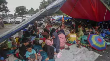 Warga mengungsi di tenda darurat, Cugenang, Kabupaten Cianjur, Jawa Barat, Selasa (22/11/2022)