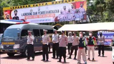 Tiga polres yang berada di Malang Raya yakni Polres Malang, Polresta Malang Kota, dan Polres Batu kompak meluncurkan layanan vaksinasi ‘drive thru’ di halaman Satyahaprabu Polres Malang.