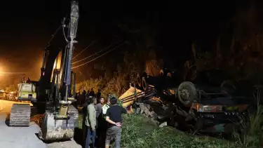 Satu unit alat berat diturunkan kelokasi kejadian untuk melakukan evakuasi jenazah sang sopir truk yang masih berada didalam kabin truk tersebut, proses evakuasi berlangsung dramatis sekitar setengah jam petugas Kepolisian dibantu warga sekitar akhirnya berhasil mengevakuasi jenazah supir truk.
