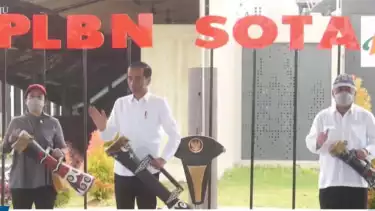 "Dengan mengucap bismillahirohmanirohim dan dengan nama Tuhan Yang Maha Pengasih lagi Maha Penyayang, Pos Lintas Batas Negara Terpadu Sota saya nyatakan diresmikan," ujar Presiden.