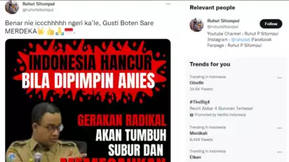 Diketahui, Ruhut mengunggah meme bertuliskan 'Indonesia hancur bila dipimpin Anies. Gerakan radikal akan tumbuh subur dan memecahkan NKRI'.