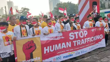 Hari Migran Internasional, PMI Kibarkan Stop Human Trafficking di Bunderan HI