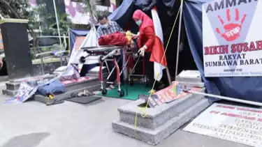 Aksi mogok makan ini adalah korban perusahaan tambang emas dan tembaga PT Amman Mineral Nusa Tenggara (AMNT).
