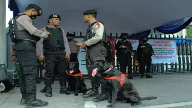 Jakarta, tvOnenews.com - Polda Metro Jaya menerjunkan tim penjinak bom (Jibom) dalam sterilisasi gereja yang melangsungkan kegiatan ibadah Perayaan Natal 2022.