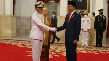 "Kita tahu dua per tiga Indonesia ini adalah air, adalah laut. Jadi konsentrasi untuk kedaulatan utamanya di laut itu yang jadi tanggung jawab besar dari KASAL yang baru, Pak Muhammad Ali," ujar Presiden Jokowi.