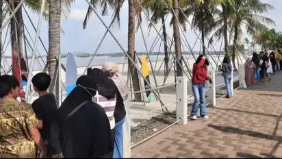 Via, salah satunya. Wanita berhijab asal Tangerang itu semula tak tahu perihal penutupan pantai. Dia sudah terlanjur datang bersama ibunya, Sri, dan adik-adiknya. Alhasil, Via hanya mengambil foto dan menikmati pantai dari sisi luar pembatas.