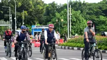 Jakarta, tvOnenews.com - Presiden RI Joko Widodo (Jokowi) gowes di kawasan car free day (CFD) Sudirman-Thamrin, Jakarta, Minggu (15/1/2023).