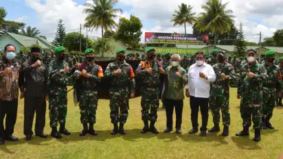 Pangdam I/BB Lepas 450 Personil Yonif 123/ RW Perbatasan RI-Papua Nugini