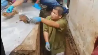 Proses penggalian lubang mayat salah satu korban pembunuhan berantai atau serial killer di Cianjur. (Rizki Amana/tim tvOne)
