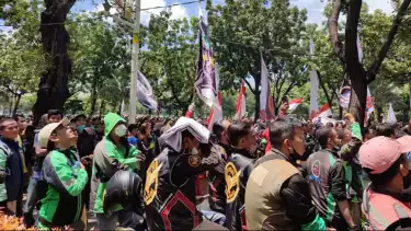 Jakarta, tvOnenews.com - Ratusan pengemudi ojek online (ojol) menggeruduk Gedung Balai Kota DKI Jakarta atas tuntutan menolak kebijakan Electronic Road Pricing (ERP) atau jalanan berbayar elektronik.