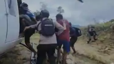 Benny menuturkan, proses evakuasi para pekerja bangunan puskesmas dilakukan aparat gabungan TNI-Polri, dengan menggunakan helikopter.