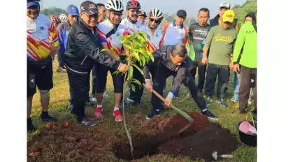 Setelah acara penanaman dilanjutkan dengan gowes bersama menuju kantor Walikota Jakarta Selatan yang juga dilakukan oleh para camat dan lurah dari wilayahnya masing masing. Sekali lagi "One Bike One Trees" ujar Saleh.(chm)