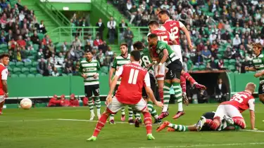 Bermain di hadapan suporter sendiri, Sporting tancap gas dan bisa menciptakan peluang pada menit ke-6 lewat tendangan Pedro Goncalves.