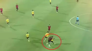 Alhasil, Jucie Lupeta pun tampak terpental. Pemain dengan tinggi badan 186 cm itu kemudian bangkit dan memelototi Asnawi dengan tatapan kesal.