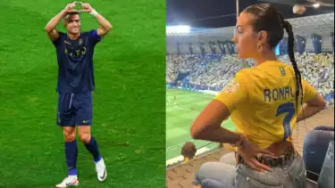 Setelah mencetak gol jarak jauh yang sensasional melawan Al-Khaleej di Liga Pro Saudi pada hari Sabtu, Ronaldo membuat simbol hati dari tangannya ke arah Georgina.