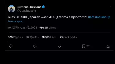 Salah satunya datang dari pandit sepak bola Indonesia, Coach Justin yang angkat bicara soal hasil dan juga posisi wasit dalam laga tersebut.