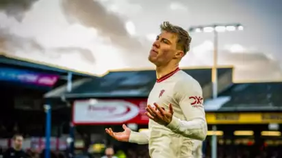 Bintang anyar Manchester United, Rasmus Hojlund pun terlihat ikut merayakan kemenangan pembantaian yang dilakukan Atalanta di Anfield.
