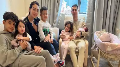 Cristiano Ronaldo beserta pasangannya, Georgina Rodriguez, dan anak-anaknya tampak tersenyum dalam foto keluarga yang tampil di media instagram. Tampak Cristiano memangku dua anak perempuan termudanya, Alana dan bayi yang baru lahir. Gio (panggilan Georgina) memangku Matteo, anak Ronaldo dari perempuan lain. Dan putra sulung, Cristiano Junior, duduk bersama Eva, kembaran Matteo.