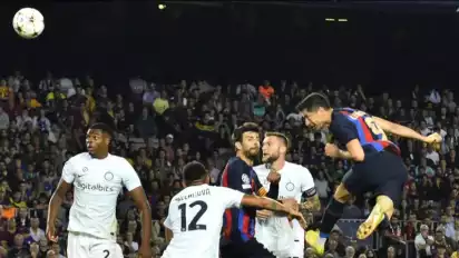Barcelona menyamakan kedudukan saat Robert Lewandowski mencetak gol pada menit 81. Tendangan spekulasinya membentur seorang pemain Inter hingga mengecoh kiper Andre Onana dengan mudah. Skor imbang 2-2.