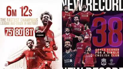 Selain menyusun hat-trick tercepat di Liga Champions, Mohamed Salah juga menata rekor lain. Ia membukukan gol terbanyak, 38, untuk satu klub Inggris di kompetisi paling elite sepakbola Eropa.