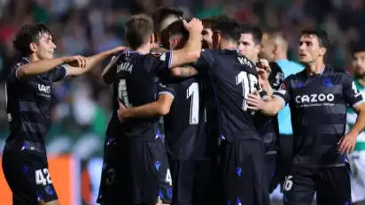 Dua gol dari Robert Navarro pada menit 45+2 dan Brais Méndez (menit 60) membawa Sociedad lima kali mencatat poin sempurna. Namun peluang otomatis lolos ke 16 besar belum aman karena Manchester United juga menang 3-0 atas Sheriff Tiraspol sehingga kini terpaut cuma tiga poin di bawah Sociedad.