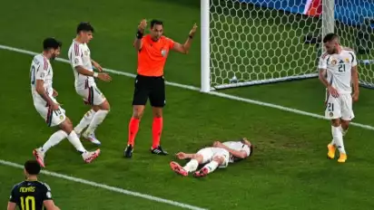 Pemain berusia 29 tahun tersebut terkapar usai berbenturan dengan pemain bertahan Skotlandia, Anthony Ralston untuk menyambut tendangan bebas, dan membuat dirinya terjatuh dengan punggung menghantam tanah terlebih dahulu.