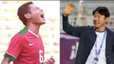 Evan Dimas dan Shin Tae-yong. Sumber: kolase tvOnenews.com